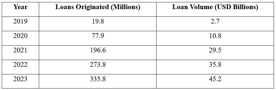 Buy Now, Pay Later (BNPL) has emerged as one of the fastest-growing innovations in digital consumer finance, transforming how short-term credit is delivered at the point of sale. By embedding installment lending directly into online checkout systems, BNPL providers have reduced friction in retail payments while expanding access to short-duration financing. Between 2019 and 2023, BNPL loan originations increased from 19.8 million to 335.8 million transactions, with total lending volume reaching $45.2 billion in the United States alone. This rapid adoption signals a structural shift in payment behavior, particularly among younger consumers who prefer flexible alternatives to traditional credit cards.